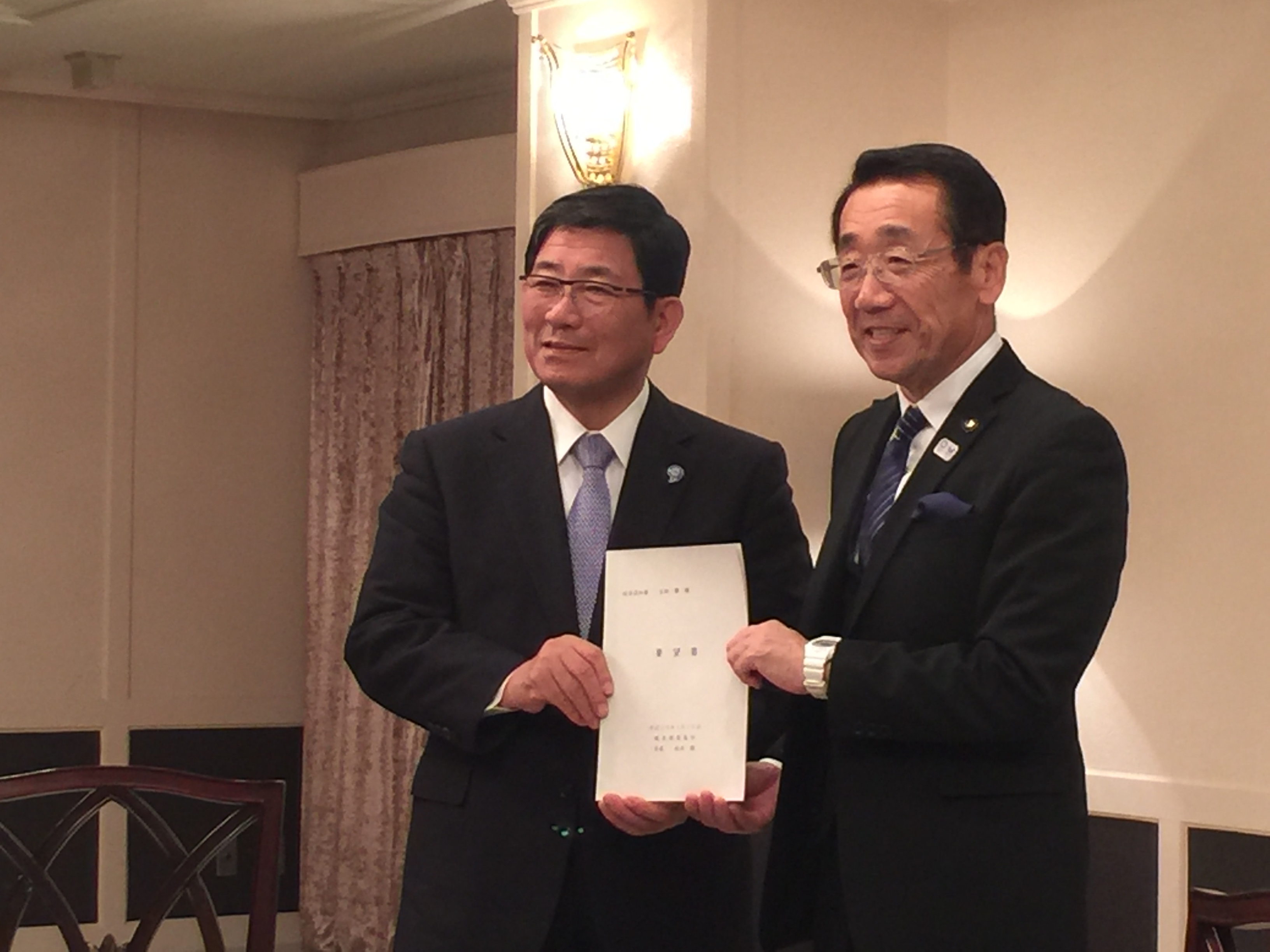 羽島市の要望を松井市長より古田知事に手渡され、個人演説会では、知事の熱意を拝聴する事が出来ました!