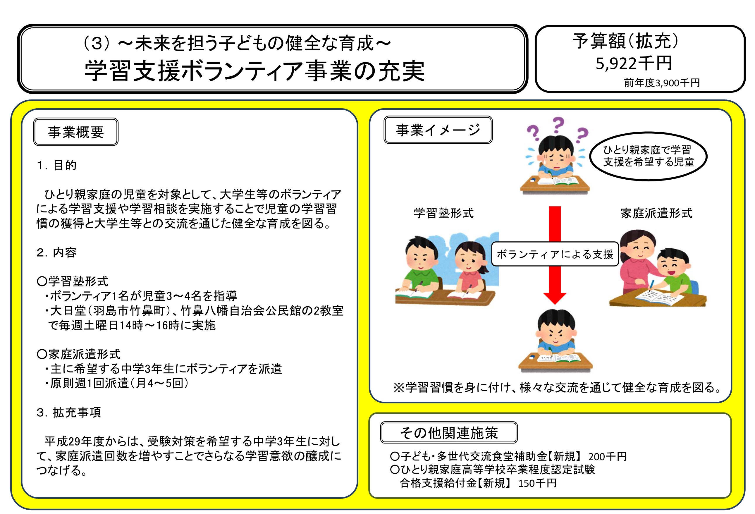 ~未来を担う子どもの健全な育成~学習支援ボランティア事業の充実ついて。