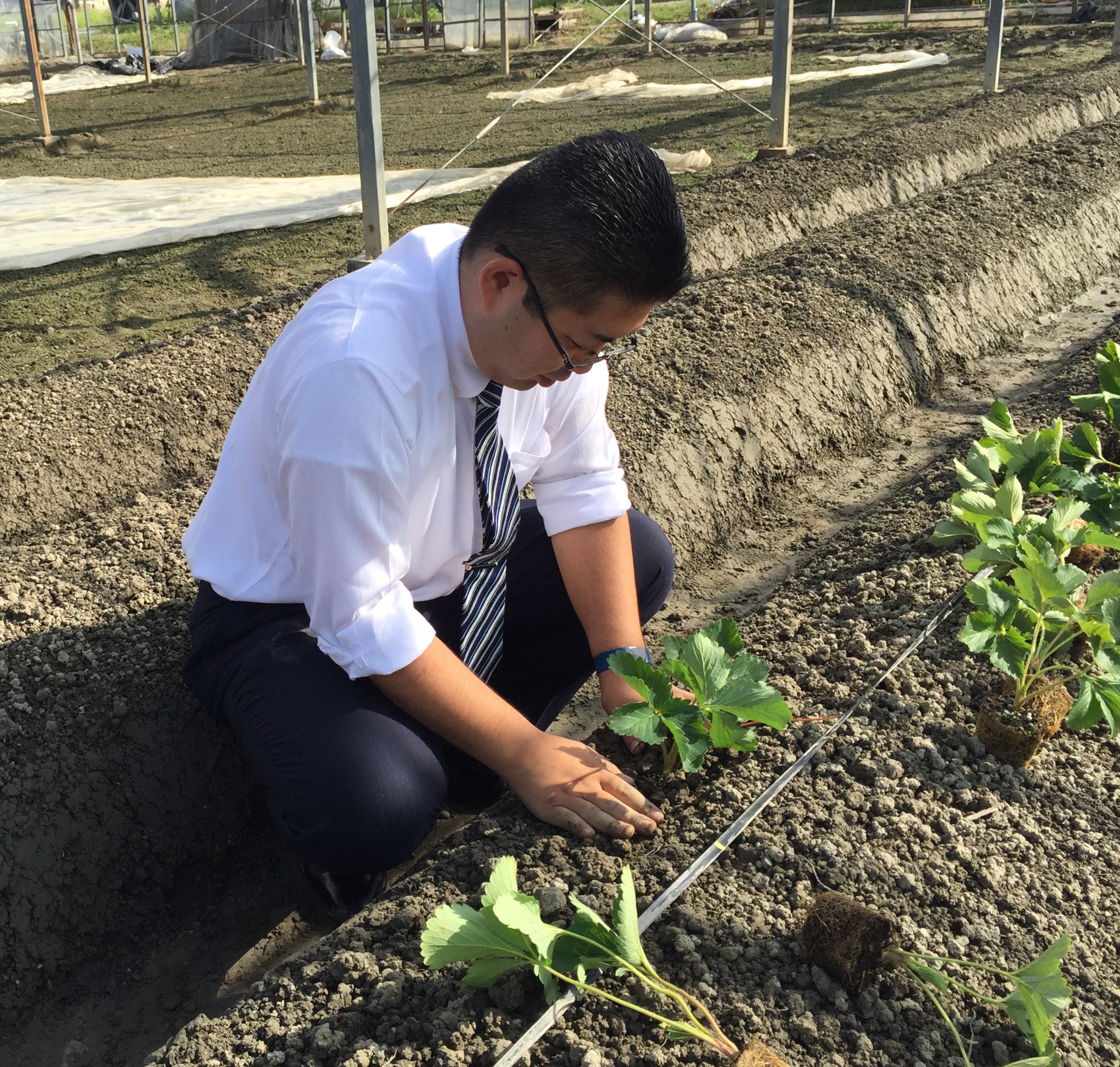 地元の農家の方とイチゴの苗を植えました!
