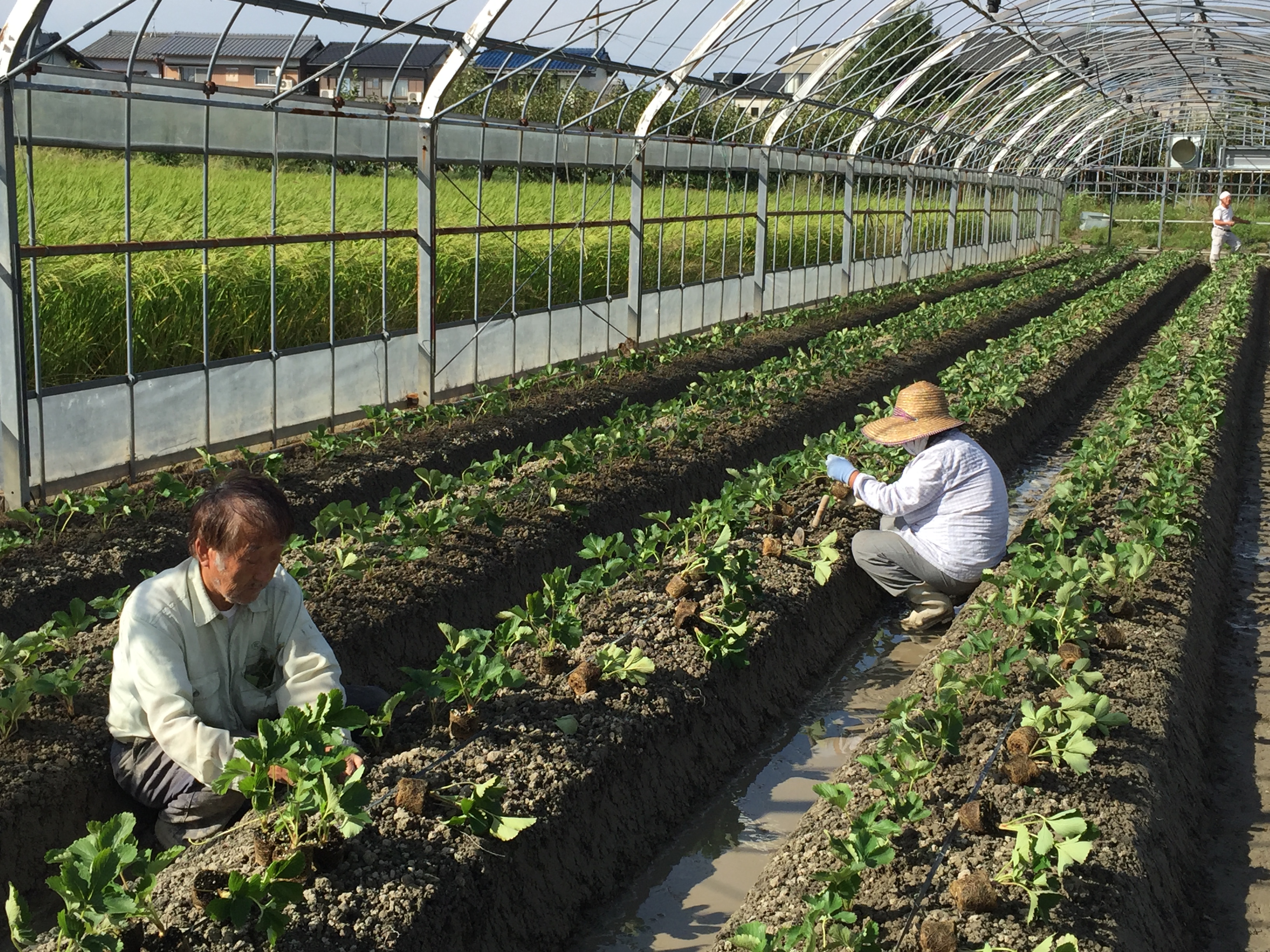 地元では、イチゴの苗を植える農家の皆さんが多く微力ながらお手伝いをさせていただきました。