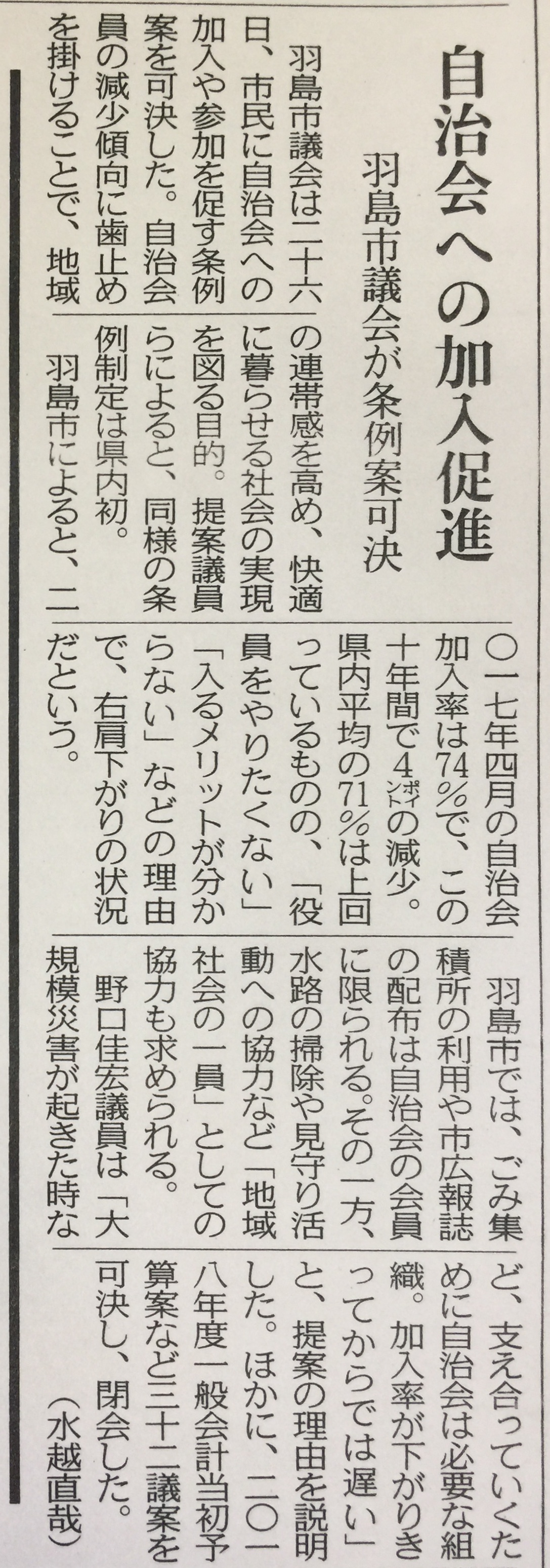 提案、上程した「羽島市自治会への加入及び参加を促進する条例」は、可決されました。