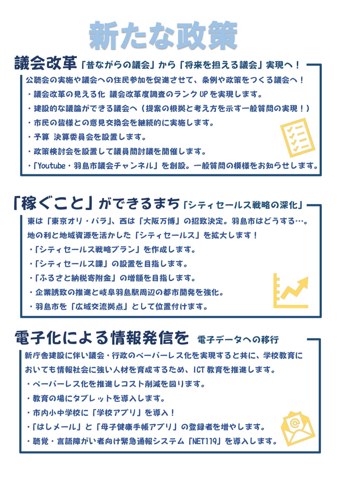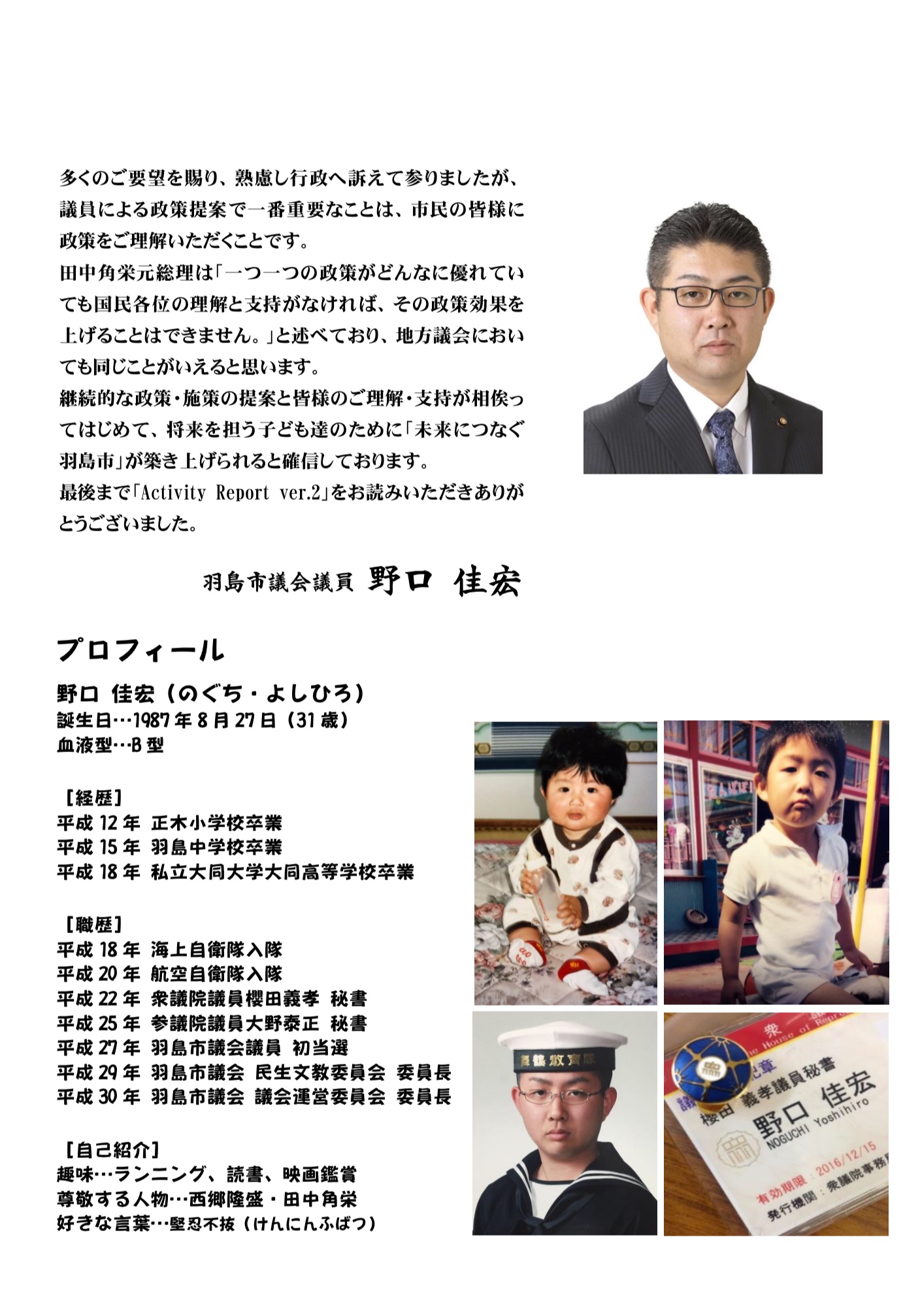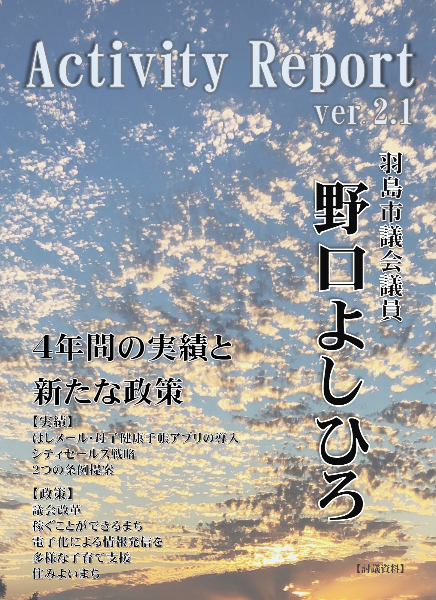 Activity Report ver.2.1 2018/12/24 4年間の活動と今後の政策をまとめた「Activity Report ver.2.1」を発行しました。 是非、ご覧ください! 「Activity Report ver.2.1」のダウンロードはこちらから! Share on FacebookTweetFollow us