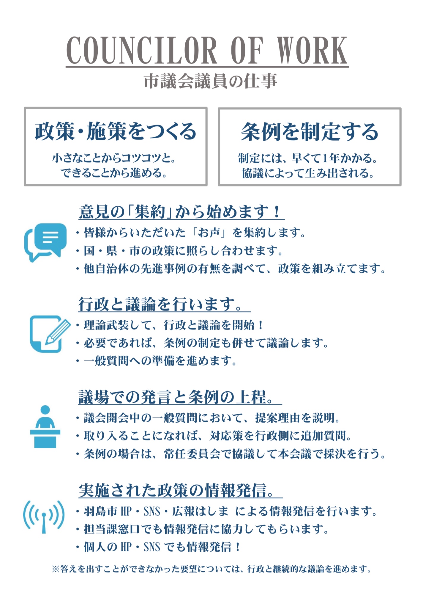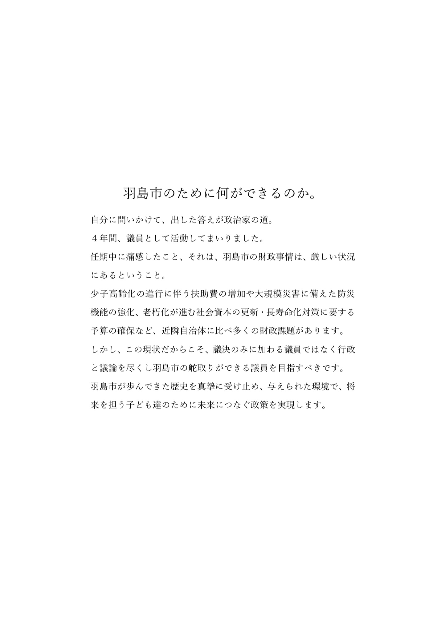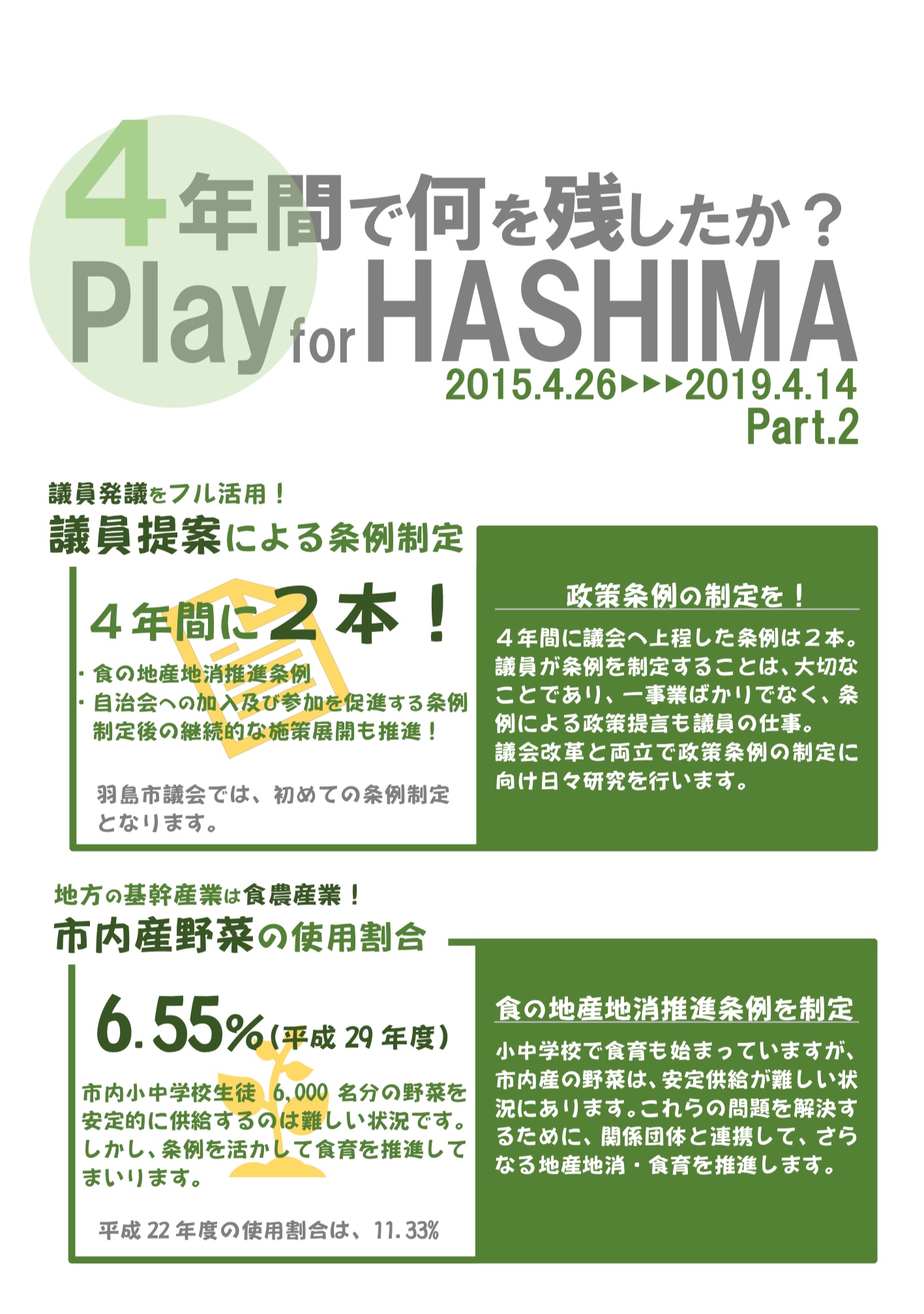 Activity Report ver.2.1 2018/12/24 4年間の活動と今後の政策をまとめた「Activity Report ver.2.1」を発行しました。 是非、ご覧ください! 「Activity Report ver.2.1」のダウンロードはこちらから! Share on FacebookTweetFollow us