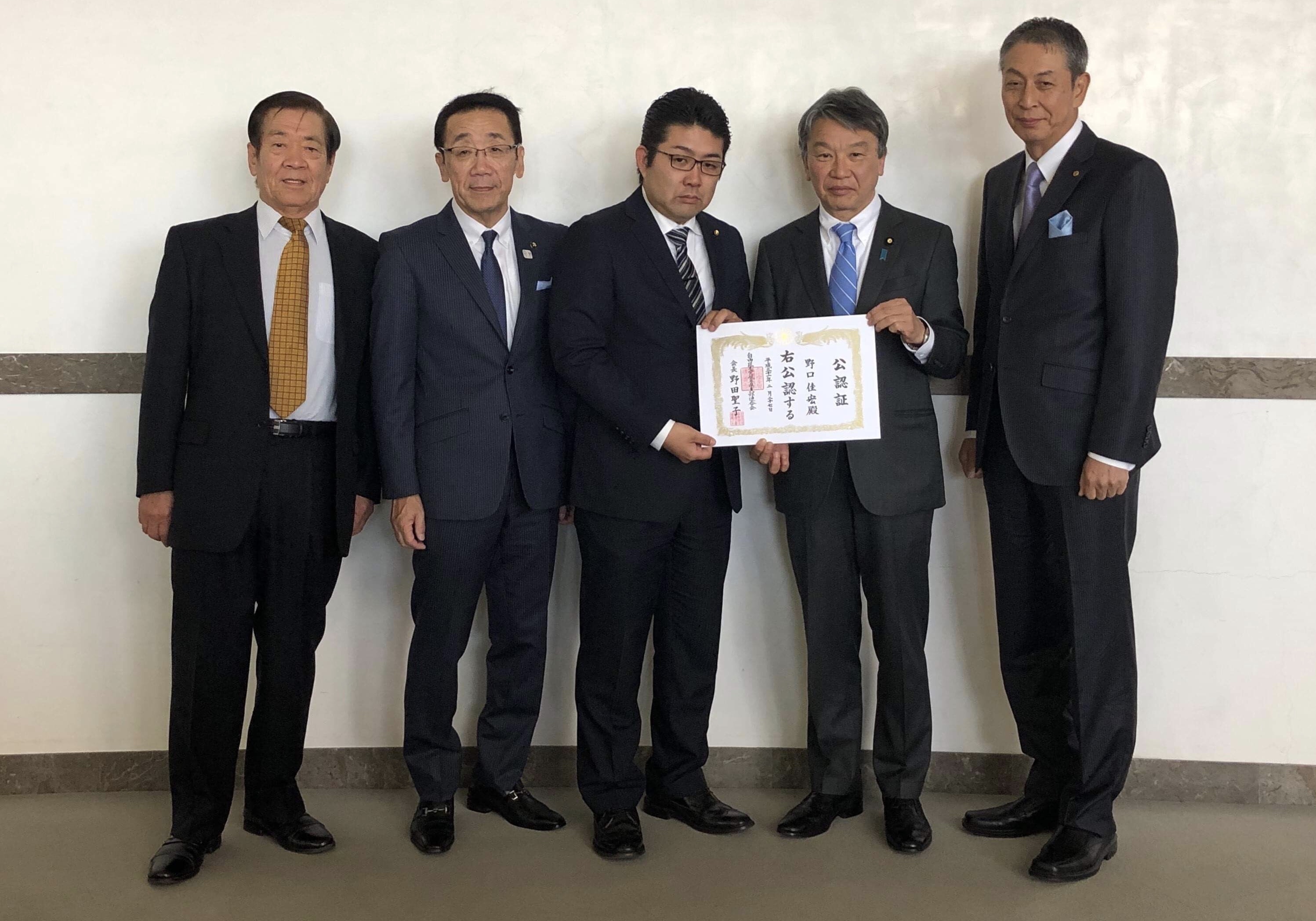 大野泰正参議院議員より公認証を拝受