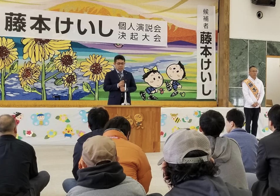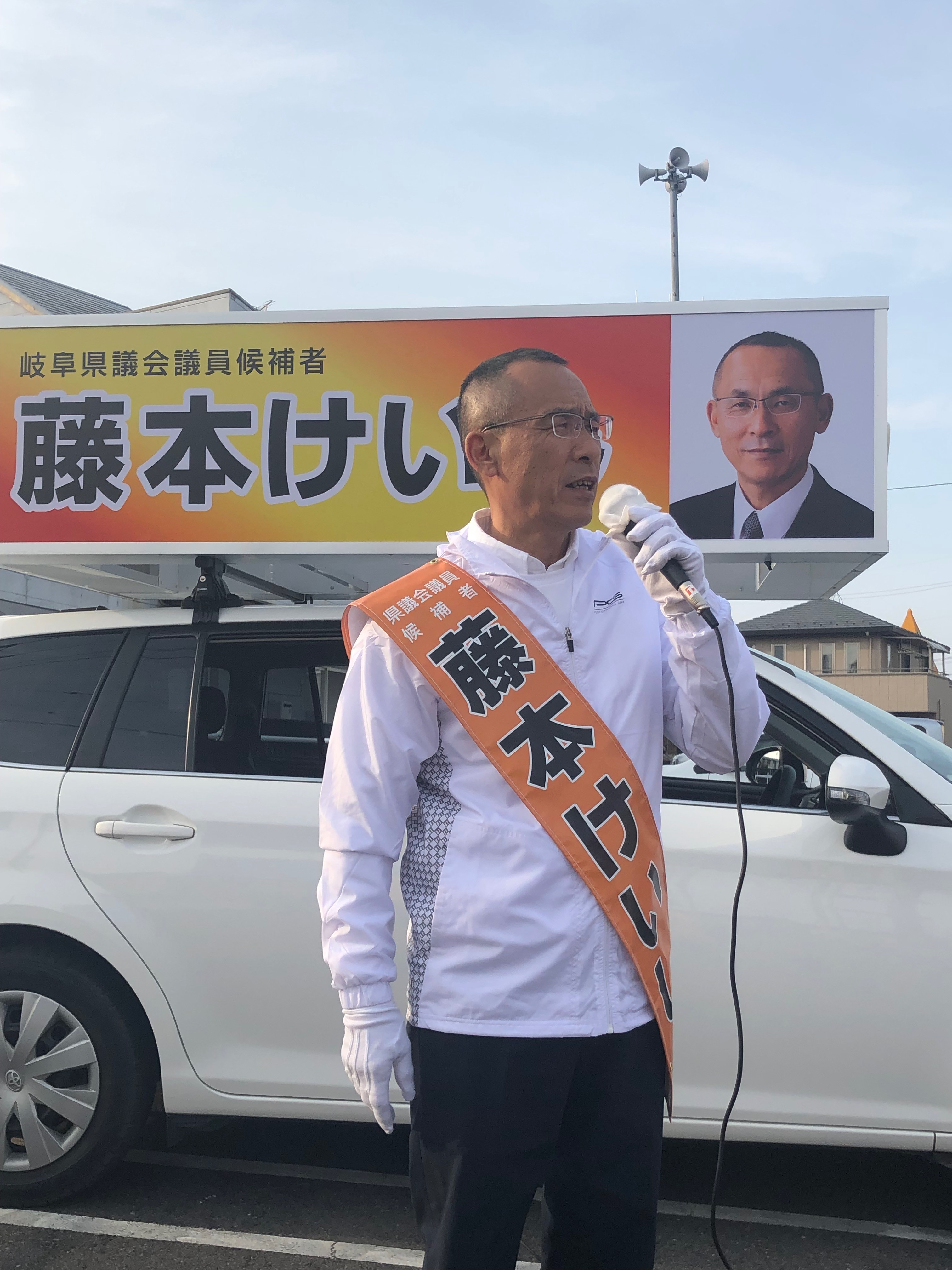 県議選の期間中は、街頭演説・個人演説会など多くの場所で皆様に「藤本けいし候補」が熱く訴えています!